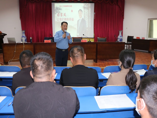 副校长郭军强调家长是孩子的第一任老师,对孩子的成长发展有着至关重要的作用,给家长提出了一些家庭教育方面的建议:一是家长要营造积极向上的家庭氛围;二是家长要与时俱进,更新教育理念;三是家长要善于理解孩子和善于倾听孩子心声;四是家长要鼓励、赏识孩子,帮助孩子树立自信心;五是要潜移默化,言传身教,做孩子优秀的榜样。