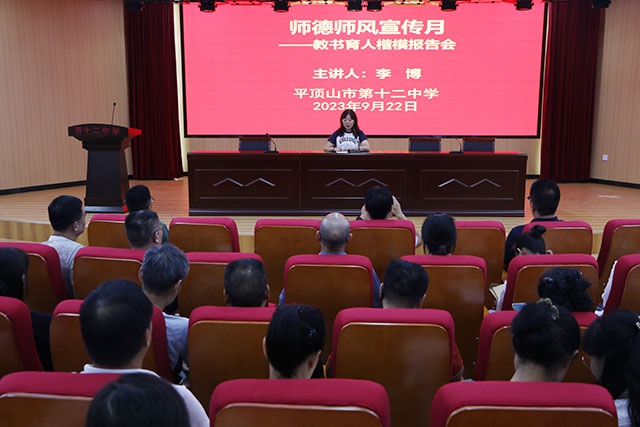 为进一步加强师德师风建设,充分发挥先进典型人物的示范引领作用,引导广大教师向身边的榜样学习,9月23日,平顶山市第十二中学隆重举行教书育人楷模先进事迹报告会。