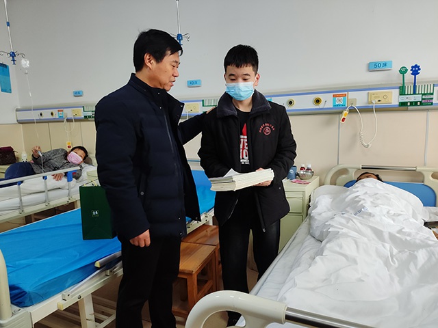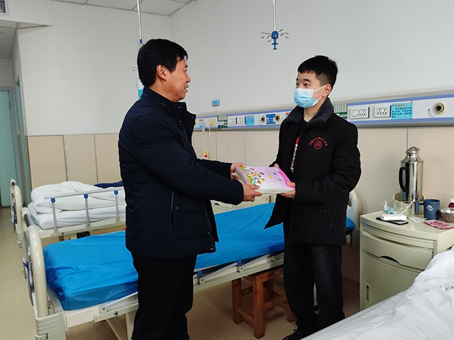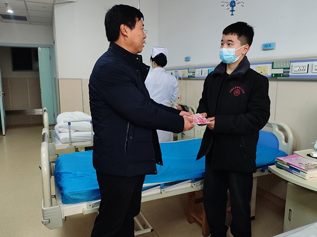 面对接踵而来的命运打击,霖霖用柔弱的肩膀扛起了家庭的负担,命运苍凉,但爱心和温情也在这个城市里流动和传递着。平顶山市第十二中学得知霖霖的具体情况后,积极沟通协调,为霖霖复学积极创造条件,帮助霖霖实现继续上学的愿望。校长范登河、副校长杨海涛、郭军得知消息后,当即去医院看望霖霖以及他的父亲,给霖霖带去了七年级的课本,并送上500元钱,以尽绵薄之力。范登河亲切地对霖霖说:“你是一个好孩子,有孝心、有担当,又勇敢、又坚强,是新时代好少年!祝愿你的爸爸可以早日康复,期待着你早日入校学习,通过学习更多的知识为自己铺就一条通往未来的道路。”范登河表示,学校将采取免去生活费和餐费等政策,全心助力霖霖学业。