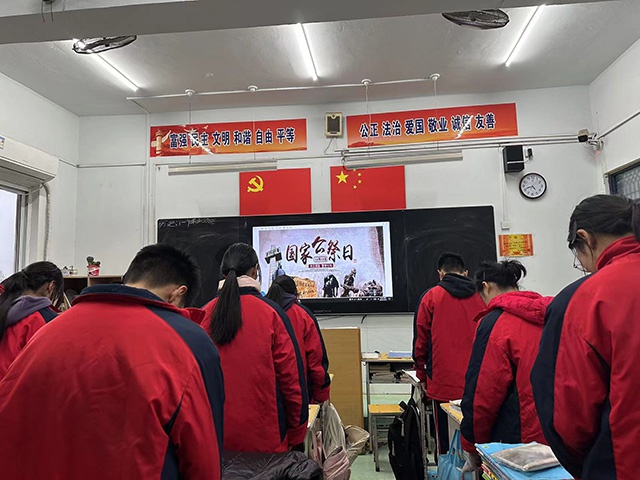 学校各班召开主题班会,通过集体默哀、观看影像资料等方式,悼念在南京大屠杀中遇难的同胞,教育同学们铭记历史,珍视现在来之不易的和平生活,坚定理想信念,以实际行动为民族复兴贡献力量。