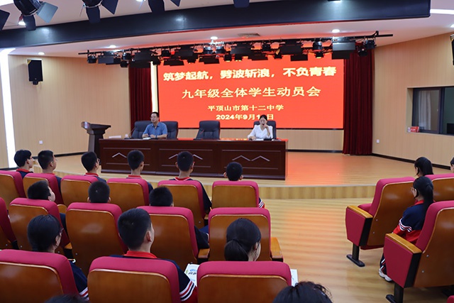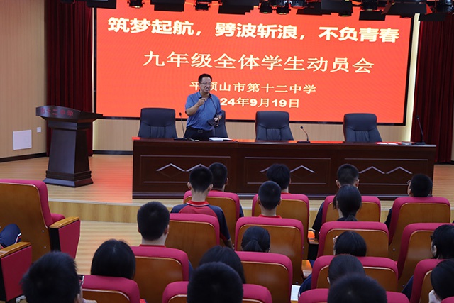 在秋高气爽、硕果累累的美好时节,新学期的钟声已经敲响。在这充满希望的时刻,9月19日下午,市十二中在五楼报告厅举行了九年级全体学生动员大会。此次大会旨在激励同学们扬帆逐梦,以奋进昂扬之姿投入到九年级学习的新征程之中,坚定中考必胜的信念,共同迎接即将到来的挑战。