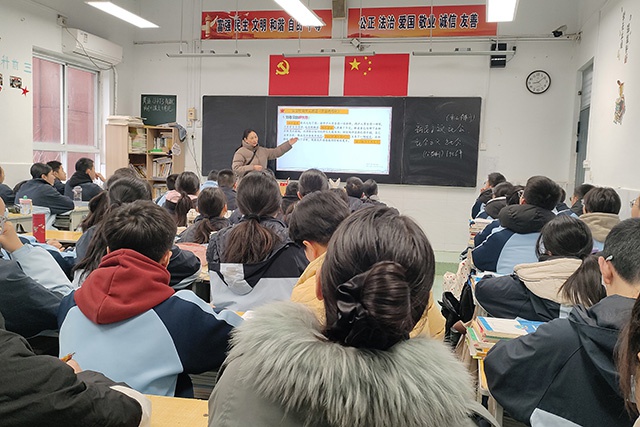 本次公开课活动,课型丰富多样,新授课、复习课、活动探究课百花齐放。教师们紧扣学科内核,匠心独运地打磨教学环节,呈现了一节节精彩纷呈的优质课例:李娟辉老师讲《土地的誓言》时,以家国情怀为线,借影像与朗诵引导学生品析抒情语言;王丹丹老师由生活实例导入《探索两直线平行的条件》,化解难点培养逻辑思维;巩淼焱老师组织小组合作,让学生在真实语境提升语言运用能力;臧园老师带领学生探索生命奥秘,激发科学兴趣;冯晓静老师培养学生历史思维,引导分析历史事件提升理解能力;苏妹老师耐心教乐理知识,用案例剖析音乐风格......