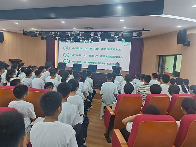 为帮助学生快速适应初中学习节奏,各学科骨干教师推出系列学法指导。语文、数学、英语专场讲座聚焦学科特点,详解初中与小学的学习差异及应对策略;随后,各科教师走进班级,针对预习复习、课堂互动、作业规范等具体环节进行细致指导,为新生送上“量身定制”的学习锦囊。