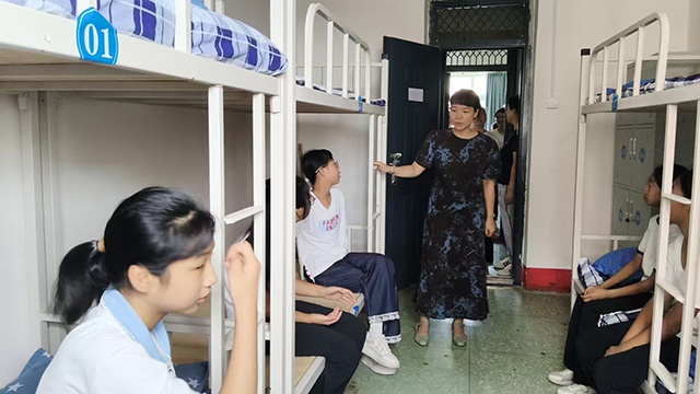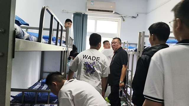 宿舍内务整理现场,老师们手把手示范物品摆放、卫生清洁的标准流程,校领导与班主任深入宿舍,耐心纠正学生操作中的细节问题。从叠被子到整理书桌,新生们在实操中掌握独立生活技能,更体会到“整洁有序”背后的自律精神。