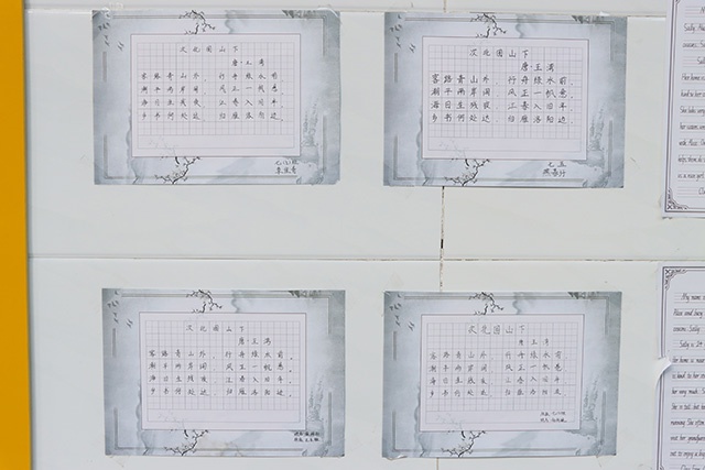 “这些作品均从七年级各班精心征集而来,” 负责策划此次展示墙的班主任团队介绍,“我们不仅想为同学们的努力与才华搭建一个可视化的展示平台,更希望以‘墙’为媒,传递榜样力量,让规范书写与审美意识在日常熏陶中悄然养成。