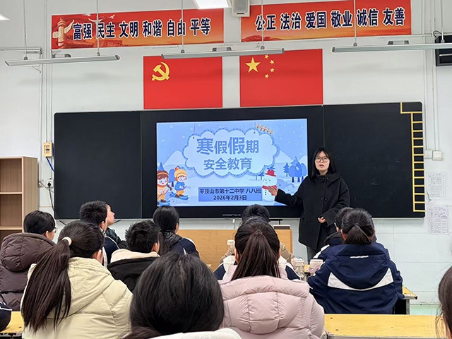 岁末寒冬至,寒假序幕启。为切实保障学生度过一个“安全、健康、快乐、充实”的假期,2026年2月3日,平顶山市第十二中学以班级为单位,集中开展寒假安全教育主题活动,为全体学生筑牢假期安全防线。
