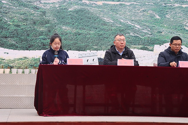 少年立志,薪火相传。优秀学生代表八(1)班马源源同学分享学习心得与成长感悟,代表全体同学许下誓言:新学期将以饱满热情、昂扬斗志,脚踏实地、刻苦钻研,不负韶华、不负师恩。