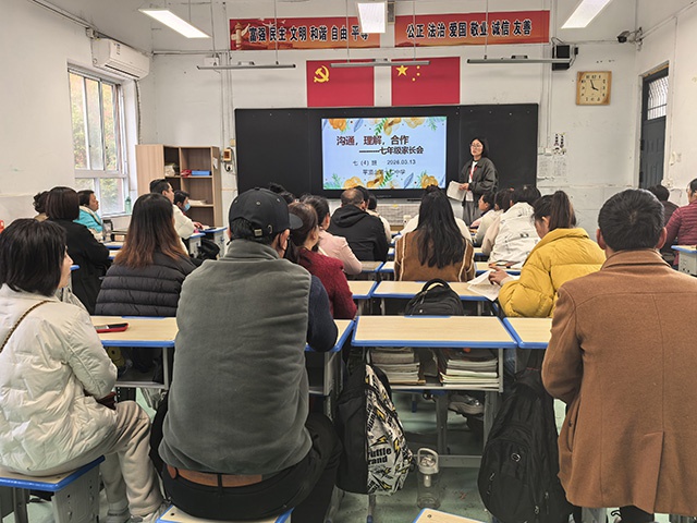 初中阶段是孩子成长的黄金期,其中七年级更是打好基础、平稳过渡的关键阶段。此次七年级家长会以分班形式开展,各班级围绕“精准施策”核心原则,开展家校深度交流。班主任们全面复盘学生上学期的学业表现与行为习惯,既充分肯定孩子们的成长亮点,也客观剖析存在的短板不足。同时,老师们围绕学科学习重点、良好习惯巩固及学生心理健康等核心维度,与家长坦诚沟通、深入交流,提供了一系列接地气、可操作的家庭教育建议,助力家长科学引导孩子夯实基础、顺利度过初中适应期。