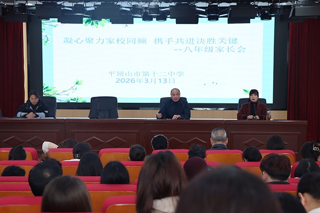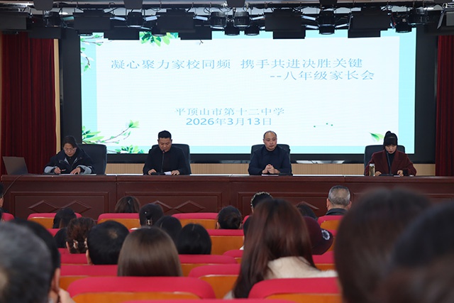 3 月 13 日,平顶山市第十二中学召开七、八年级春季学期家长会,家长齐聚校园,与学校携手同心、共话成长,为孩子们的发展之路凝聚家校合力,此次会议结合两个年级的学段特点,分别采取不同形式开展。