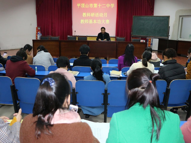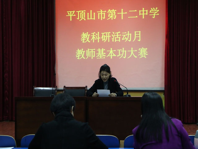 11月14日,平顶山市十二中在五楼演播厅举行青年教师基本功大赛。