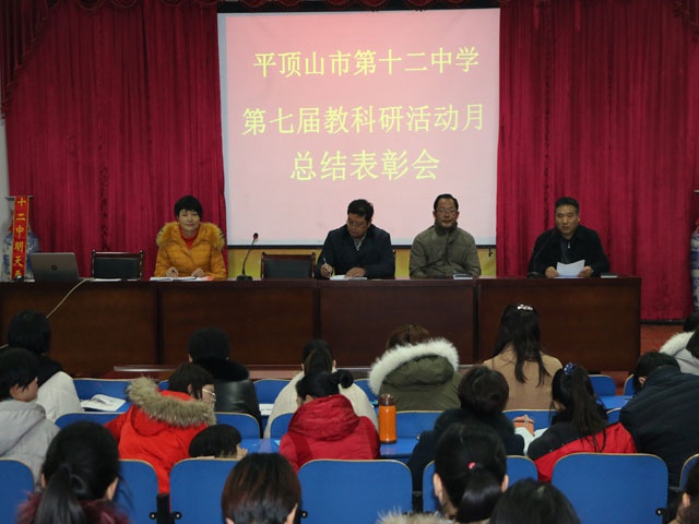 12月21日,平顶山市十二中在五楼演播厅举行“第七届教科研活动月”总结表彰会,参加会议有张贡献校长、李国学副校长、校长助理席明焕,会议由教科室李庆丰主任主持。