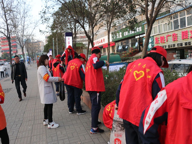 为了迎接平顶山市创建国家卫生城市复检,3月13日下午,市十二中团委组织团员与三七街社区工作人员一起义务清理凌云路与平安大道交叉口绿化带的“白色垃圾”。