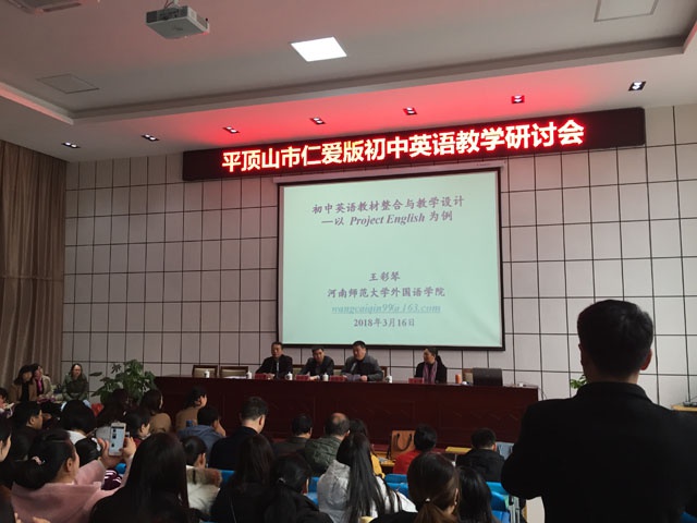 上午,河南师范大学王彩琴教授针对“初中英语教材整合与教学设计”做了精彩的演讲。下午,两位名师分别展示了同课异构的课堂教学。最后,市初中英语教研员刘红宾老师做了精彩的点评和指导。
