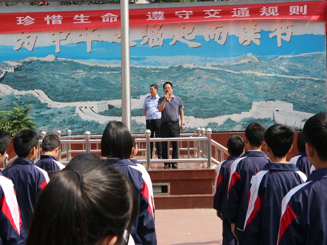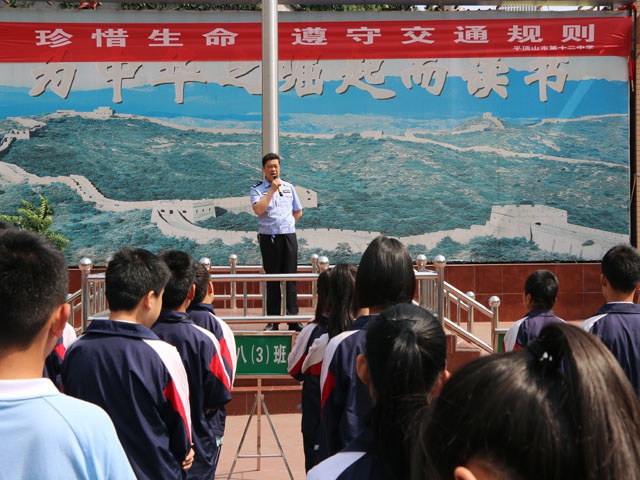 为进一步增强同学们的交通安全意识和交通法制观念,杜绝、减少交通事故发生,5月8日上午,市十二中邀请平顶山市矿工路派出所交警大队副队长周亚飞警官在学校操场为全校师生举行了一场生动的交通安全知识讲座。