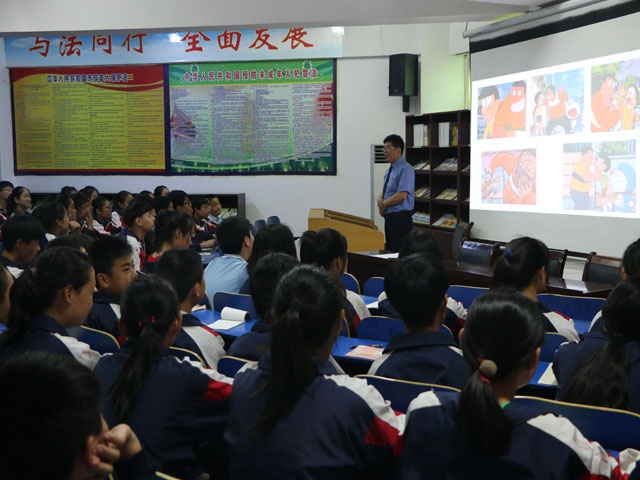 2018年5月30日上午,平顶山市十二中邀请新华区检察院未成年人刑事检察局局长郭庚午检察官在学校视频教育室做了以“拒绝校园暴力,认真对待权力”为主题的法制教育讲座。