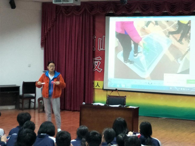 体育组李璐璐老师提前到考试现场采集图片信息,并结合这些图片信息对体育考试中的技巧和注意事项进行详细讲解,收到到了同学们的阵阵掌声。