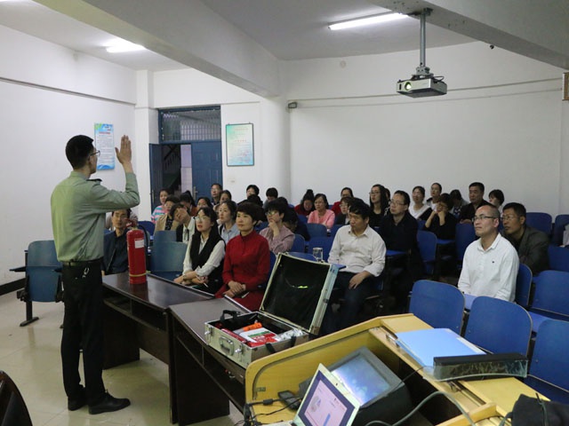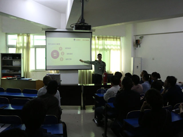 4月17日下午,中国社安消防股份有限公司的李教官在学校综合楼三楼多媒体教室为全体教职员工开展了消防安全知识讲座。