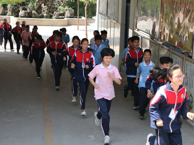 上午9:50随着警报响起,疏散演练正式开始,全校师生按照预定的疏散路线,快速、有序地撤离到操场。到达集合地点后,各班整队,由班主任清点人数,确认学生是否全部到达。
