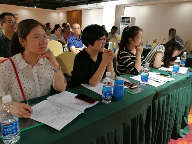 老师们专注地听专家讲课,认真地做笔记。