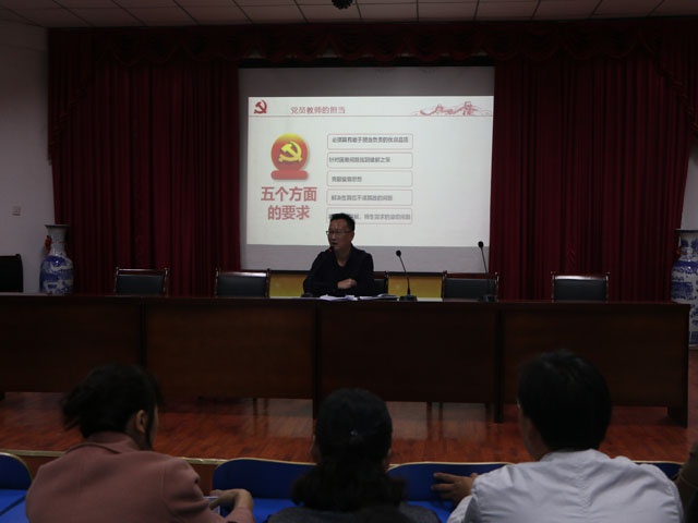 孙新志书记讲到,党员教师从加入中国共产党的那一刻,就肩负着神圣使命,要处处以高标准来严格要求自己,更要不忘教育初心,牢记神圣使命,在思想认识上、行为规范上、岗位奉献上走在一般教师前列。这不仅仅是停留在表态和决心上,更要体现在日常生活、工作中,那就是勇于负责、敢于担当:一是必须具有敢于担当负责的优良品质;二是针对困难问题找到破解之策;三是克服慵懒思想;四是解决在其位不谋其政的问题;五是解决学校发展、师生需求的迫切问题。