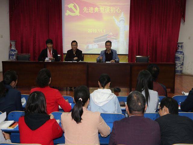 接着,根据“不忘初心、牢记使命”主题教育计划安排,席明焕、刘建兴等八名党员先进典型结合主题教育与学校发展谈了各自的教育初心。席明焕谈到:努力去启迪学生,为市十二中冲锋;姚天英谈到:充满信心,让十二中重回市教学质量第一方阵学校;杨凌飞谈到:不忘教育初心,坚持孜孜以求;赵晓珍谈到:喜欢学生,努力工作;展国运谈到:热爱教师职业,执着教育事业,追梦教育教学质量提升的梦想……先进典型的事迹及初心表白深深影响了在座的党员,每位党员的目光中都充满了坚定的、不甘落后的、向先进典型看齐的神情。