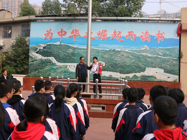 接着,河南省专安消防咨询服务中心王帅教官给全校师生讲解了灭火器、防毒面具的使用方法和火灾逃生知识。