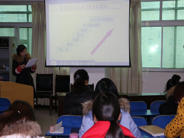 首先身为班主任的张迎新老师和王焕霞老师分别对班级管理研究进行讲座。张迎新老师所讲的《创建良好的班级文化建设》就班级环境建设、班级制度建设、班级精神建设等方面进行阐述;王焕霞老师《班级育人氛围的构建》在自己的班级管理中使用了写说明书和道歉信、每日名言、植物一角等手段,效果甚好。接着,英语组的赵晓珍老师和李璐老师就英语教学研究成果进行展示,赵晓珍老师所讲《初中英语学生自主学习能力的培养》从英语教学中如何发挥学生自主性进行阐述,李璐老师所讲的《利用微课程教学法促进信息技术与教学的深度融合》从认识微课程教学法、利用微课程促进教学计划落实等方面进行详细阐述。语文组董彦贞老师的《语言有温度 字词知冷暖》,数学组赵彩娜老师《由“一元一次方程的应用”引出的数学思维的思考》分别进行分享。