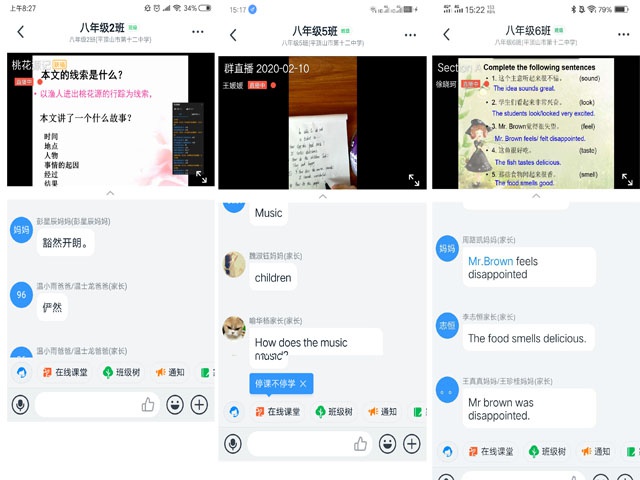 做好网上授课。业务副校长负责网上授课的统筹与安排,在前期认真培训的基础上,老师们利用手机、电脑认真讲解,配合纸质板书、课件、视频等,增强讲课效果。学生们通过文字、语音与老师互动交流,新学期的在线课堂顺利进行