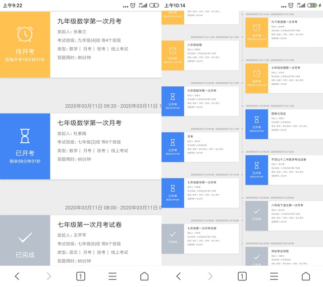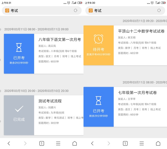 3月11日上午线上测试开始,各学科老师提前上线,全程伴随学生测试,同学们在家登陆教学平台认真作答,家长们监督到位,测试井然有序。全体师生经过一天的共同努力,第一次线上阶段测试顺利结束。