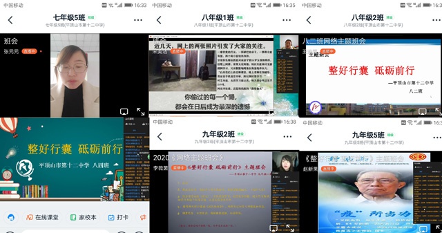 3月16日下午,为了深入推进“把灾难当教材与祖国共成长”主题教育活动,进一步激发学生的爱国热情及责任担当意识,提高网上学习质量,做好开学前的准备工作, 市十二中组织召开主题班会,18位班主任通过钉钉直播召开“整好行囊 砥砺前行”为主题的班会。