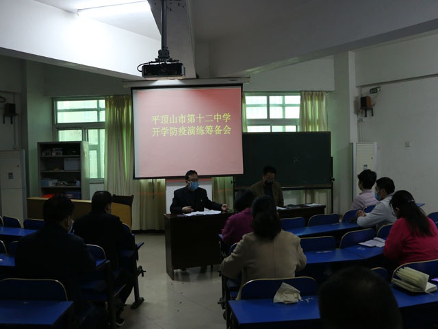 3月20日上午,市十二中召开“防疫时期开学演练”筹备会,以确保明天即将进行的防疫时期入学演练有效、有序进行。校长孙新志、副校长杨海涛、副校长席明焕、校长助理包国超、全体中层及校保健员李璐璐老师参加,副校长杨海涛主持会议。