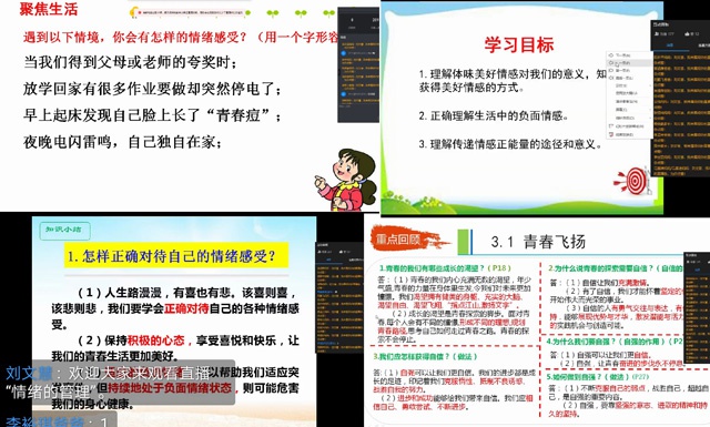 作为思品课老师,她认真学习党和国家的政策方针,结合抗击疫情情况,给学生积极引导,增强学生爱国热情,树立必胜信心,将疫情防控以及涌现出事例融入到课堂当中,向学生传递正能量。在上课前,刘老师认真备课,课堂上调动学生的积极性,通过连麦提问学生,调动学生参与课堂学习。课后,引导学生及时整理笔记,她认真批改,并评选优秀作业树立榜样。