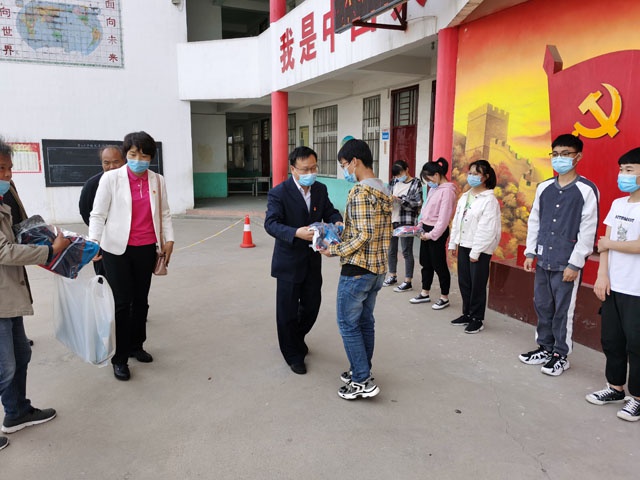 在梁洼中学,孙新志一行人与结对帮扶的九年级学生亲切交谈,了解他们复学后的生活、学习等情况,嘘寒问暖,关怀备至。孙新志代表市十二中师生将一套套崭新的运动衣套装送到学生们手中,并勉励孩子们,一定要自立自强,要树立远大的目标,要刻苦学习,增强本领,通过不懈奋斗,改变自己的命运。受帮扶的学生十分感谢市十二中近三年来的关心和帮助,并表示一定会努力学习,用实际行动回报社会。市十二中还向梁洼中学七、八年级学生赠送了各学科的教辅资料。