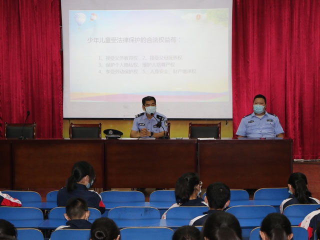 报告会由新华区矿工路派出所张中诚警官、王奥伟警官、付雪朋警官作专题报告,报告主题为——知法守法,健康成长。张警官结合中学生身心特点,用身边真实的案例,以案释法,以法论事,深入浅出地给同学们作了生动的报告,告诉大家在日常的学习和生活中,如何做一个“学法、知法、守法”的好公民。王警官结合中学生生活实际,向同学们讲述了刑事责任年龄的法律常识,告诫同学们要增强法制意识、安全意识,增强自我防范意识,远离毒品,远离校园欺凌,不沉迷于网络游戏,不因恶小而为之,做一个知法守法的中学生,在阳光下健康成长。