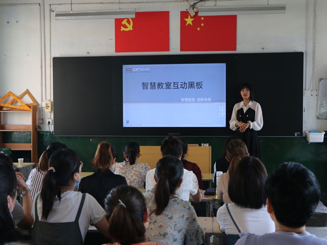 在培训中,任课教师们了解到智慧黑板由三片纯平面板拼接而成一块整体感超强的大黑板,均可支持普通粉笔、无尘粉笔及各种水笔正常书写,不更改教师的用笔习惯。黑板软件中有动画实验资源,能真实的还原实验的触感和声感;黑板自带无线网可与手机端相连,进行远程控制黑板和共享资源的功能。互动黑板配置了智能无线视频展台,无缝对接互动黑板,能够让老师在教室任何一个角落便捷使用,教学中可对展示的内容批注、保存,方便后续使用。