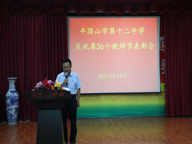 晨曦细雨育桃李,金秋硕果慰园丁。在第36个教师节来临之际,9月9日下午,平顶山市第十二中学全体教职员工及学生代表齐聚演播厅,举行教师节表彰大会。孙新志校长和全体领导班子成员参加,活动由学校办公室主任王晓兵主持。