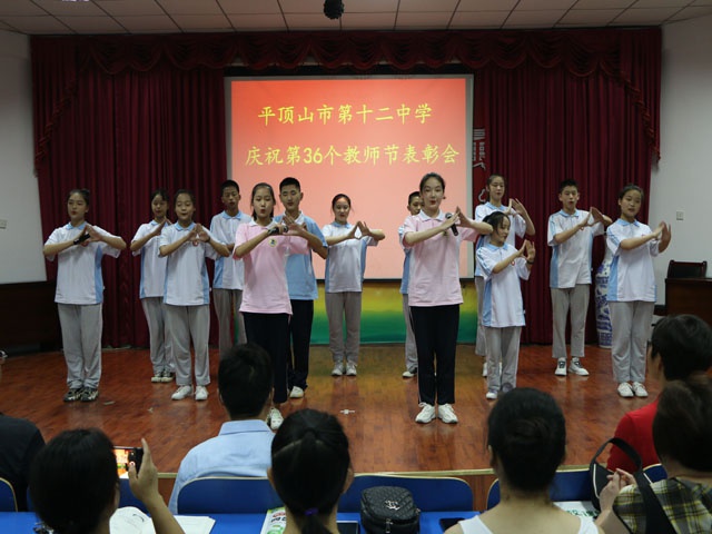 接着,学生代表用一支歌舞表演《谢谢您》,表达了全体十二中学生对各位老师的感恩之情。