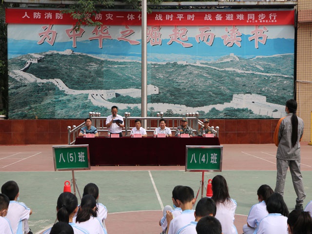 演练过后,人防办指挥通讯科王俊科长给全校师生进行了人防消防知识培训,杨海涛副校长总结了演练的得失,并宣布此次消防应急疏散演练活动取得圆满成功。