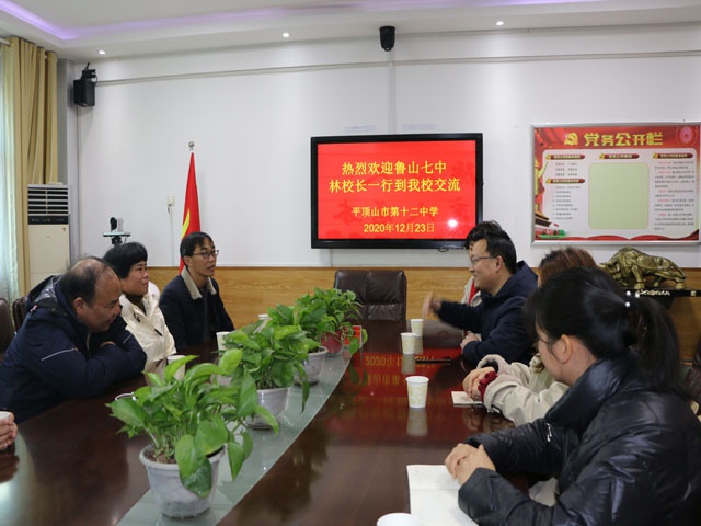 12月23日,平顶山市十二中与鲁山七中进行深度联合教研活动。市十二中孙新志校长代表学校欢迎鲁山七中林富生校长一行16人的到来,双方开展了为期一天的深度联合教研活动。