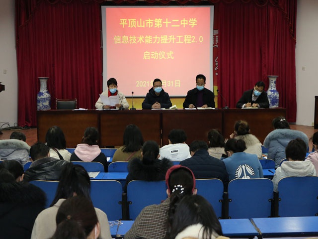 1月31日,平顶山十二中在五楼演播厅举行信息技术能力提升工程2.0启动仪式。