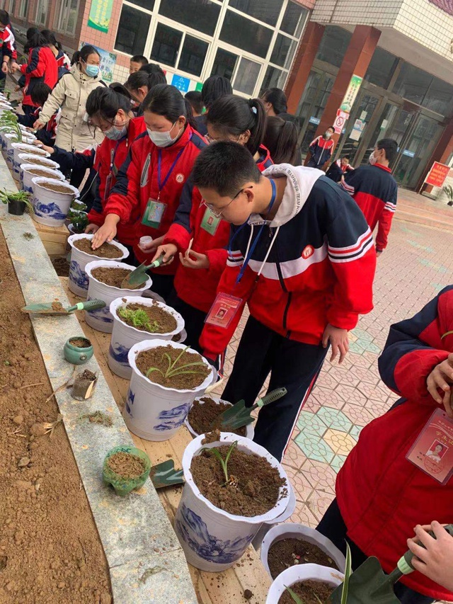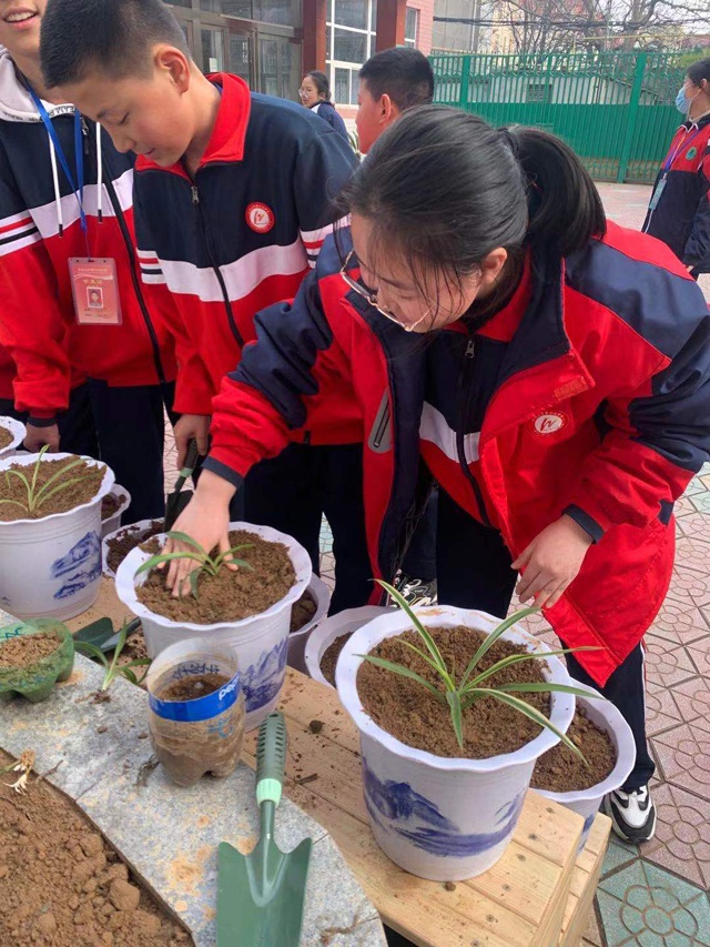 3月11日下午,市十二中组织七八年级部分学生,到学生劳动实践区进行播种和移栽。劳动技术课李慧教师现场示范如何使用小铁铲和钉耙,讲解示范移栽幼苗、播种花种。听完老师的讲解后,同学们兴致勃勃地在各自班级的花盆里栽种了芦荟、吊兰、海棠等幼苗,播种了韭菜、苋菜种子。另有一部分学生为校园的花草树木浇水修枝,劳动现场一片繁忙景象。师生共同播种春天的希望,共同呵护幼苗茁壮成长,大家脸上洋溢着幸福的笑容。