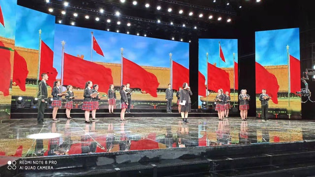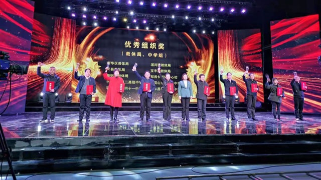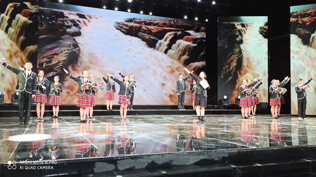 在准备颁奖现场节目中,校长孙新志十分重视,安排语文组王晓兵、汪丽烨、程亚亚、董彦真等老师精心编写剧本,邀请市电视台主持人到校指导,参与演出的师生不怕吃苦,反复排练,直到剧场效果满意为止,师生们精心的准备换来了舞台上惊艳的展示。