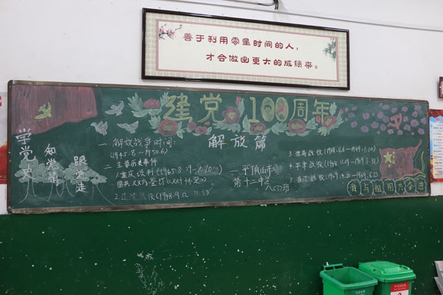 同时各班精心制作了“学党史 感党恩 跟党走”的黑板报,展现了学生心目中的中国共产党的伟大历程,也表现了青少年对中国共产党的感恩之情。