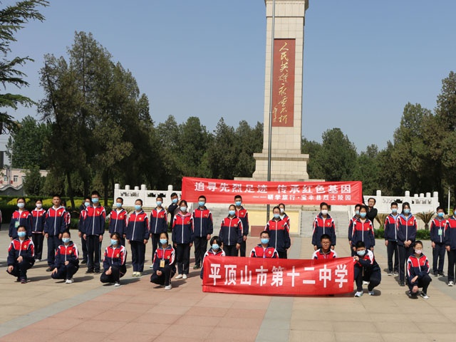 为深入学习贯彻习近平总书记在党史学习教育动员大会上的讲话精神,庆祝中国共产党成立100周年,铭记英烈功勋,弘扬英烈精神, 4月30日上午,在学校副校长杨海涛、团委书记李猛的带领下,市十二中40余名团员来到宝丰烈士陵园开展 “追寻先烈足迹,传承红色基因”为主题的研学活动。