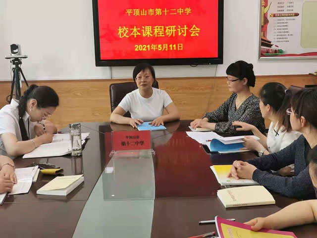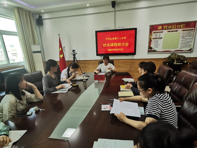 5月11日下午,市十二中英语组在三楼会议室开展校本课程研讨会,会议由英语组教研组长赵新果主持,全体英语教师参加会议。