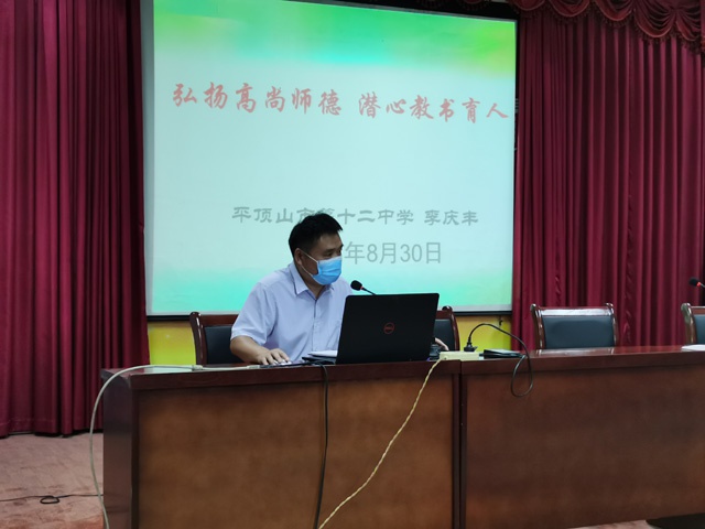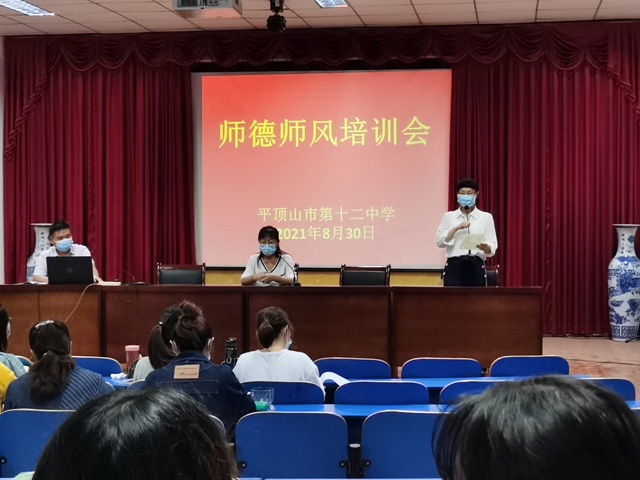 为进一步加强师德师风建设,规范教师从教行为,8月30日,市十二中组织全体教师开展了以“弘扬高尚师德,潜心教书育人”为主题的师德师风大学习大讨论活动。