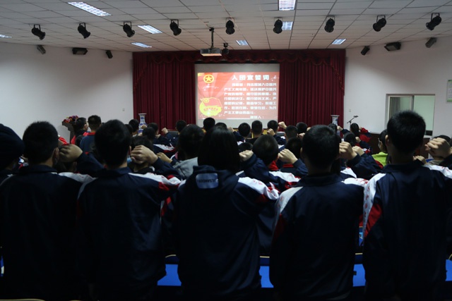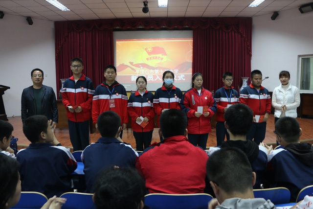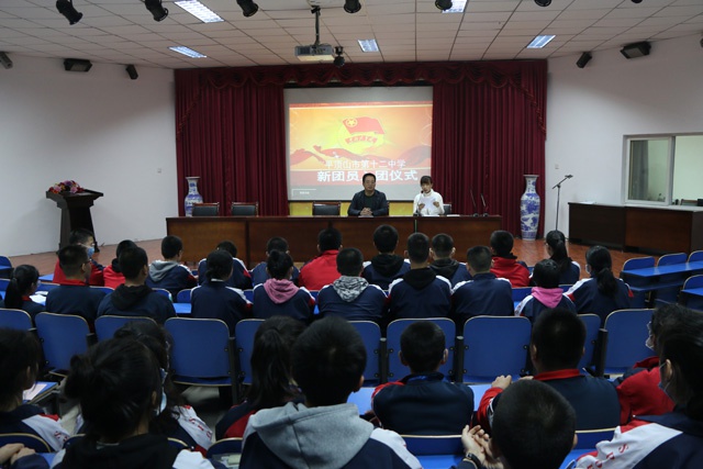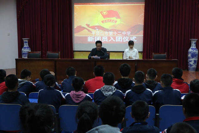 11月1日下午第三节课,市十二中在学校五楼演播厅举行了新团员入团仪式,副校长杨海涛、团委副书记王苹苹参加了此次活动。