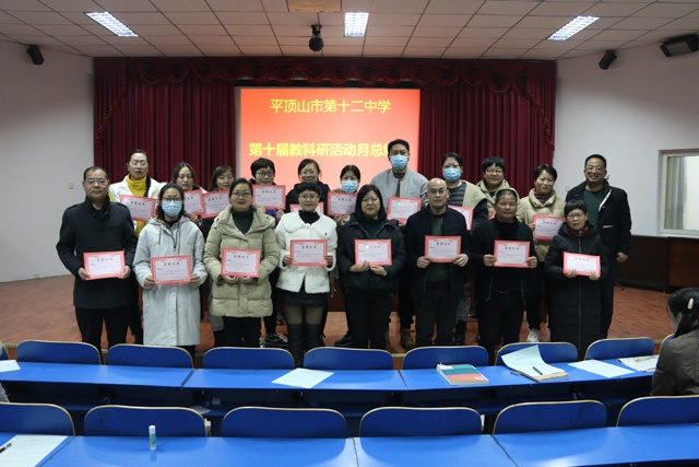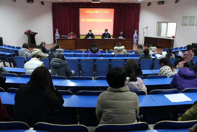 12月10日,平顶山市十二中在五楼会议室举行第十届教科研活动月总结会,会议由教科室李庆丰主任主持。