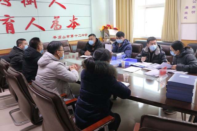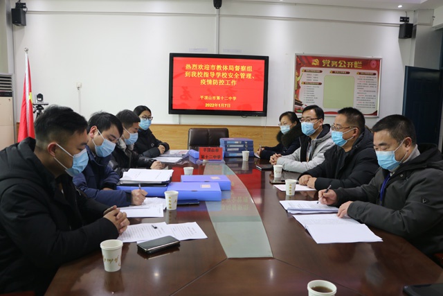 1月7日上午,市教育体育局发展规划科副科长谢盼龙一行3人对市十二中疫情防控及校园安全管理工作开展专项检查。市十二中副校长杨海涛、校长助理包国超及相关科室负责人陪同。