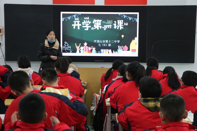 2月16日下午3:30市十二中学以班级为单位举办2021-2022学年春季“开学第一课”活动,班主任主持活动。